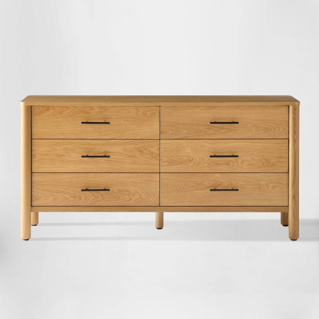 This bed frame offers a clean, modern platform design crafted from solid rubberwood and acacia, combining durability with minimalist aesthetics. The generous platform height leaves under-bed clearance for storage, while the wide slat spacing supports all mattress types.