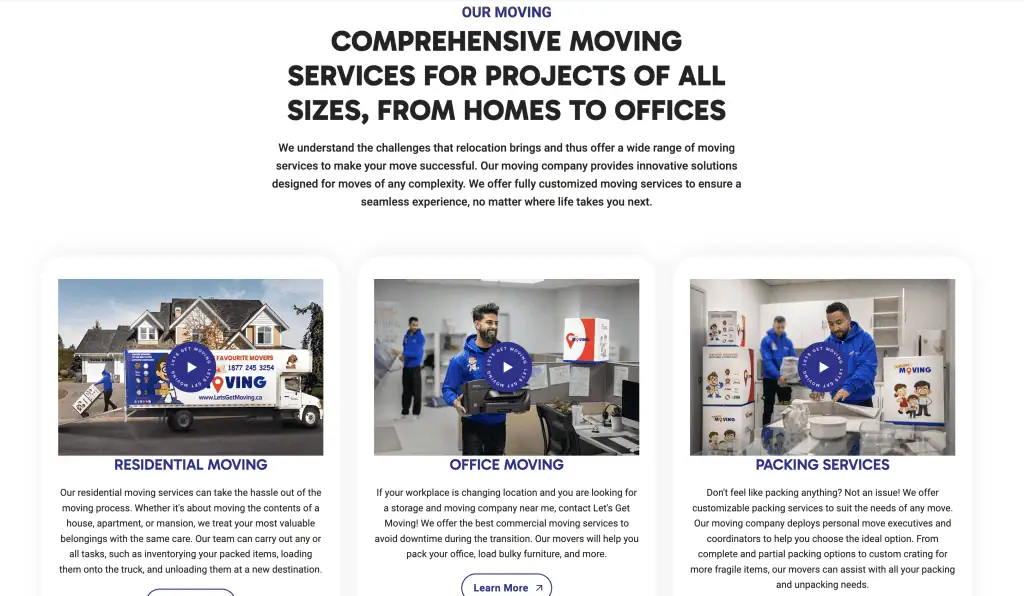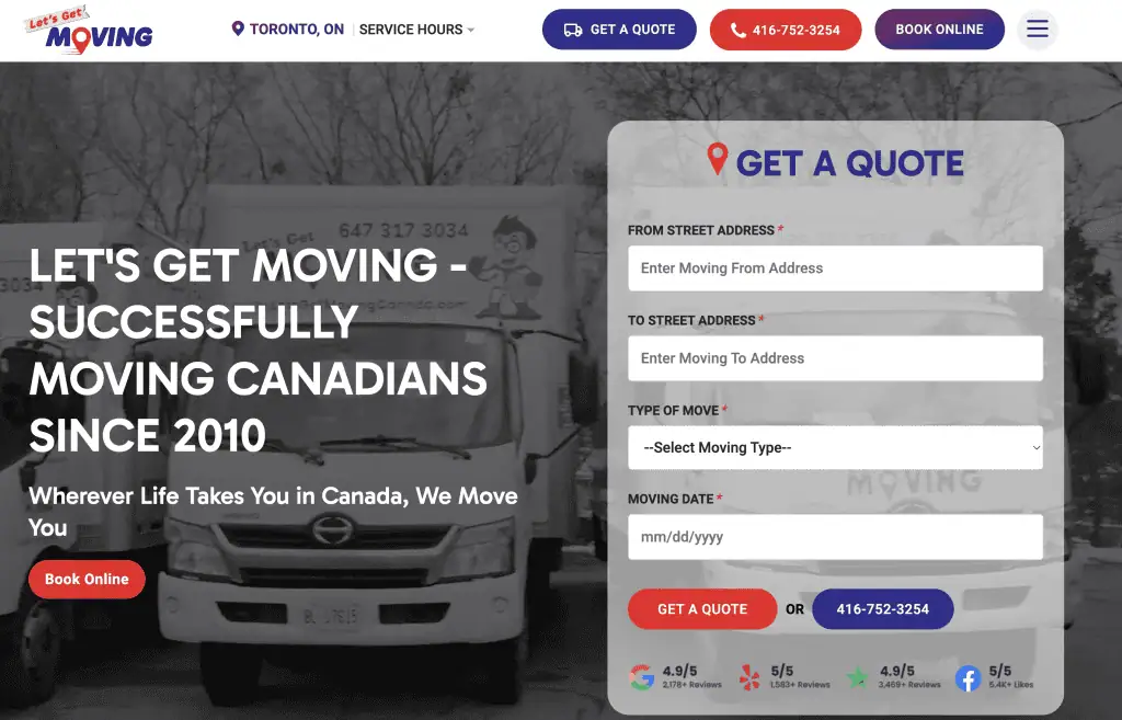 Let’s Get Moving is an award-winning moving company serving Toronto, the Greater Toronto Area, and beyond in Canada and the U.S. The company is known for their exceptional customer service and reliable moving solutions and handles residential, commercial, and long-distance relocations. Let’s Get Moving has transparent pricing and a professional team that ensures every move is smooth and stress-free.